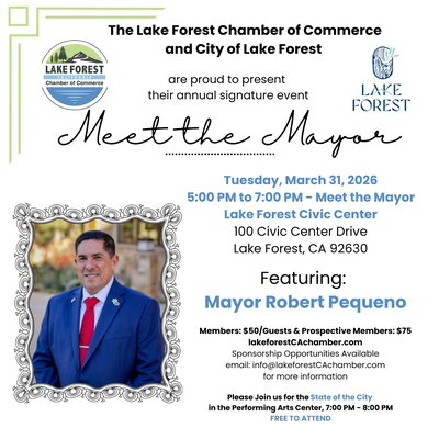 Before the presentation, come network with local business owners during the Chamber’s Cocktail Hour and Dinner, starting at 5 PM. This "Meet the Mayor" is a unique opportunity to hear directly from Mayor Robert Pequeno as he shares his background and experiences while serving on the City Council.